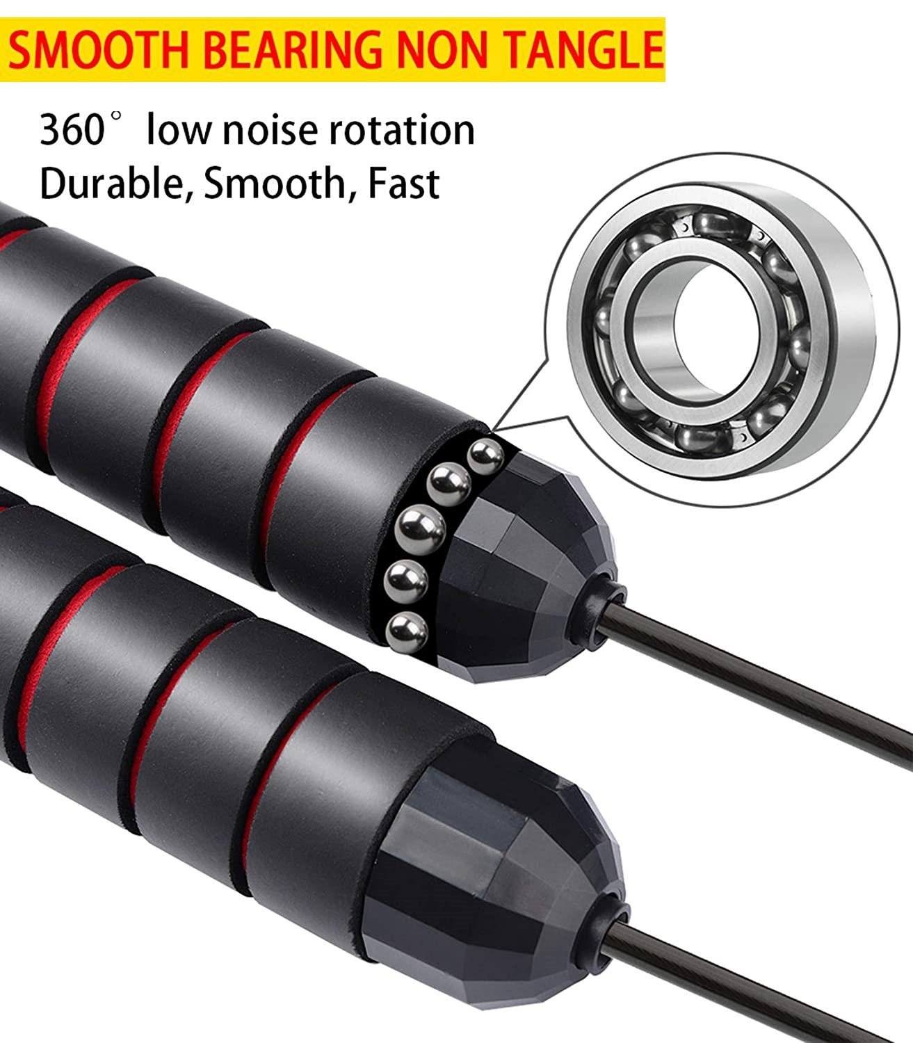 - SMOOTH FAST & NO MORE TANGLING! - High quality ball bearings ensure smooth and rapid speed rotation, avoids the twisting, winding or bending like other fitness ropes,which brings your a perfect exercise of skipping rope.