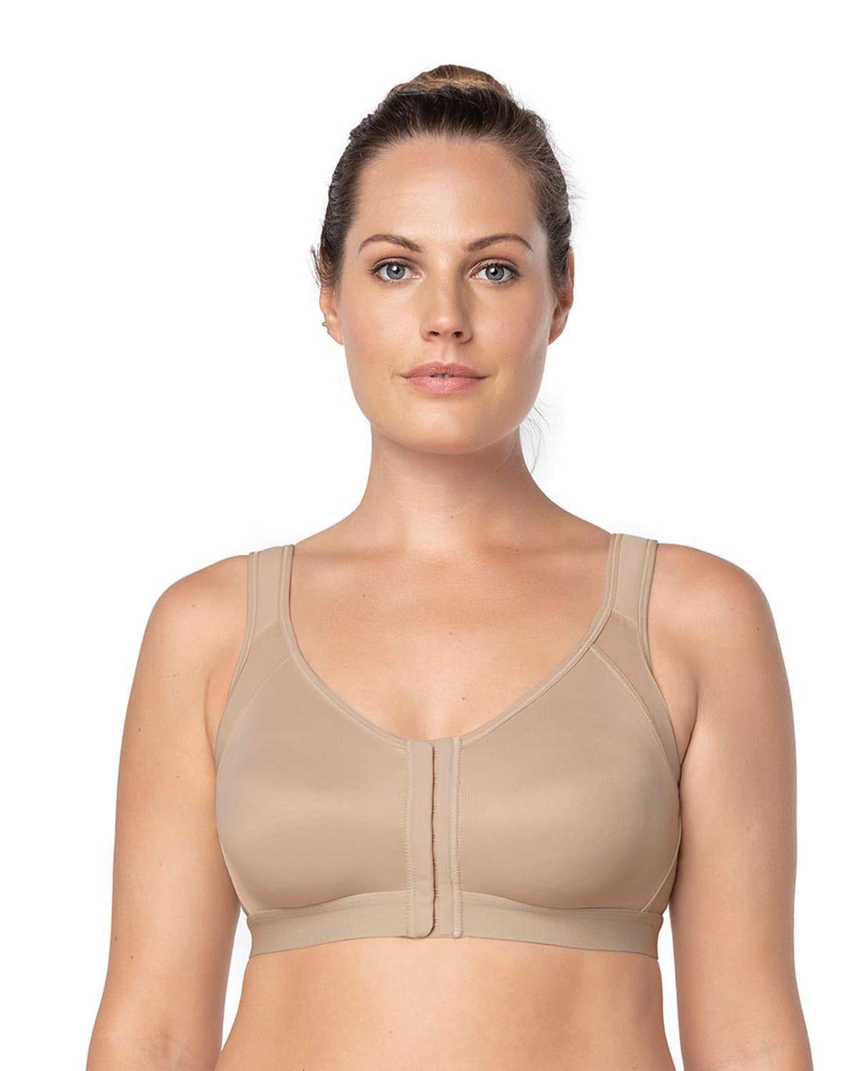 Its soft cups are ideal for post-surgery wear, as it protects the incisions from becoming infected. It also provides excellent coverage, controls bust volume and gives a natural rounded appearance. Its cotton-backed adjustable hook and eye front closure makes it easy to put on even with limited mobility.